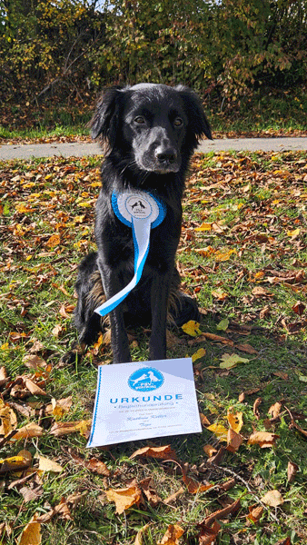 hat mit seiner Besitzerin Kathrin seine Begleithundeprüfung im Oktober 2025 bestanden. Herzlichen Glückwunsch dazu…das werden sicher nicht die letzten News dieser beiden sein 🥰 ich freue mich schon sehr auf ihre gemeinsame Zukunft !!!
